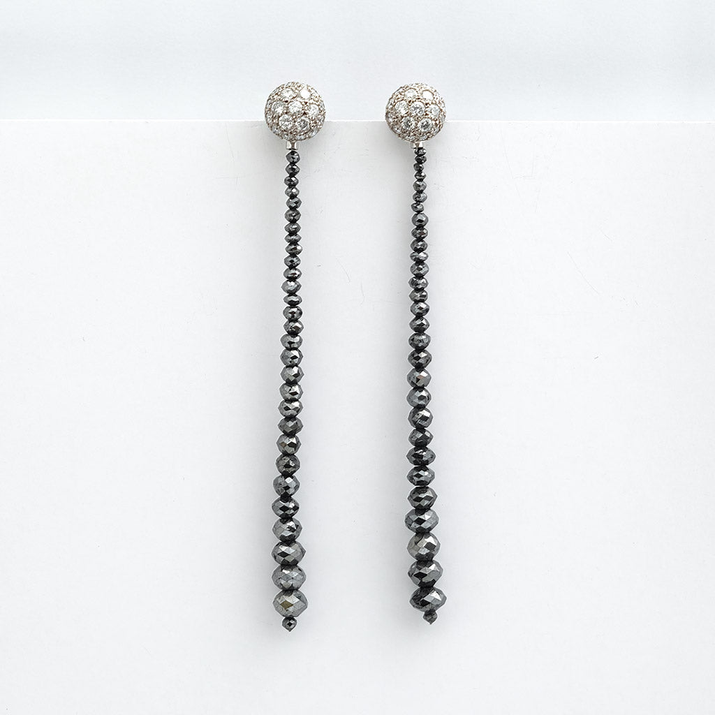 Ohrstecker-Anhänger aus glitzernden schwarzen Diamanten in feinem Verlauf nach unten größer werdend. Diese Anhänger lassen sich mit fast allen Ohrsteckern kombinieren, indem man die kleine Öse auf den Stecker schiebt. So wird ein klassischer Ohrstecker festlich, elegant.